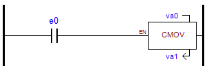 El copiado de va0 a va1 depende de que el valor leído de e0 ponga en 1 el bit 0 del acumulador.