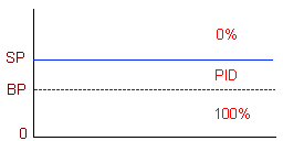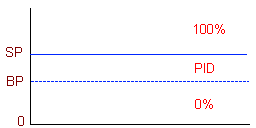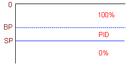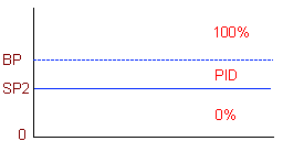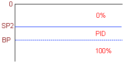 Por arriba de BP el control está al 100%, entre BP y SP actúa el control, y por debajo de SP está al 0%.