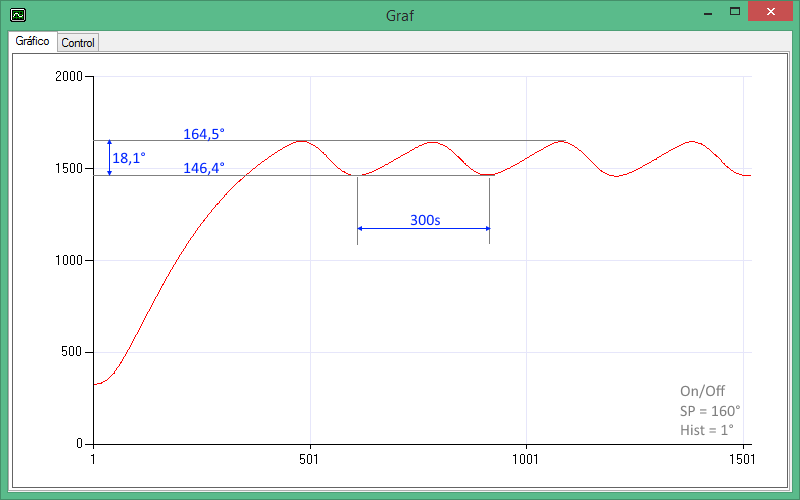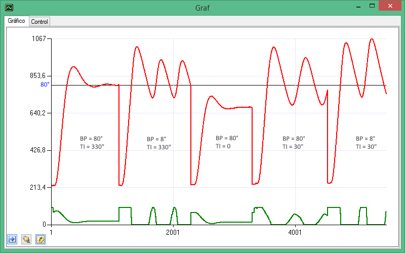 Al realizar la prueba (con SP de 2 valores distintos, 80° y 160°) se obtuvo este resultado: