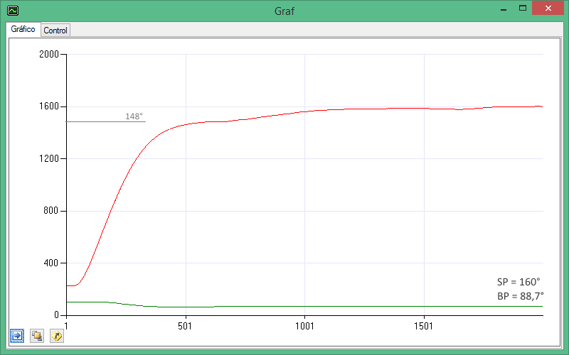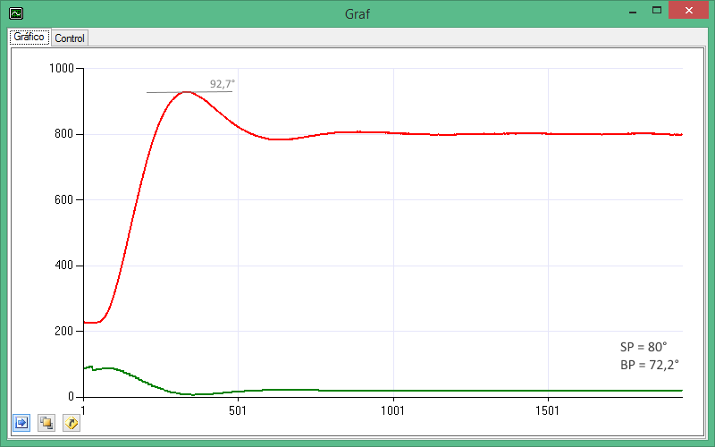 El control se inició con los valores calculados. Como se ve, aun la BP no es la adecuada (debe agrandarse)